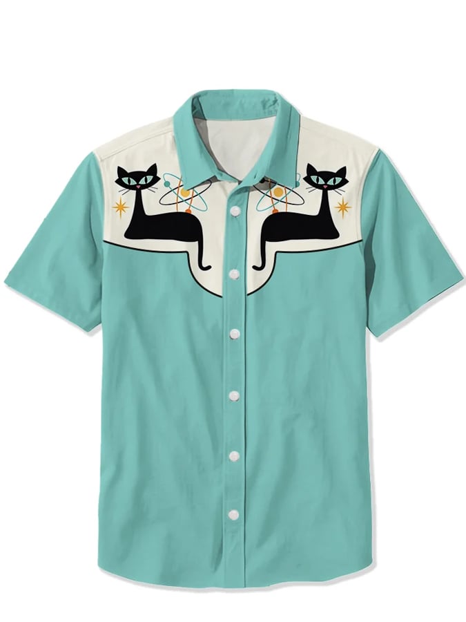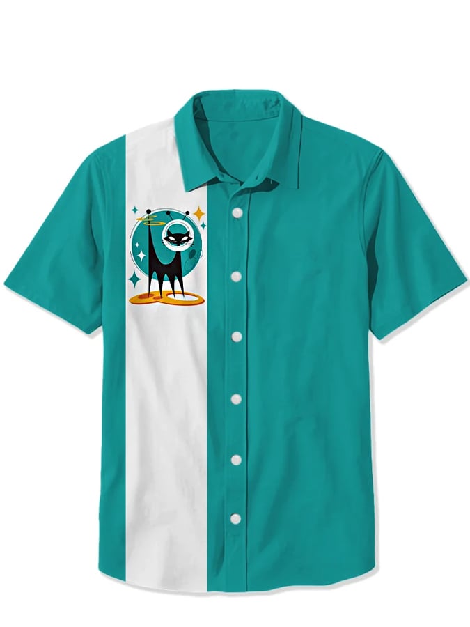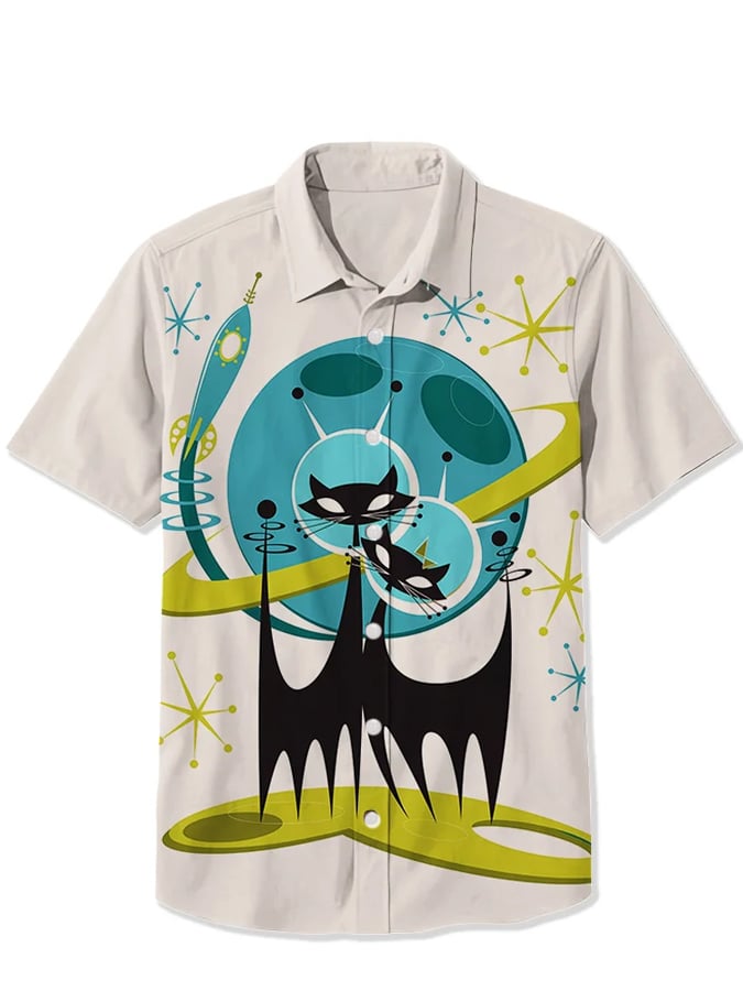 Men's 50S Atomic Space Cat Print Casual Shirt