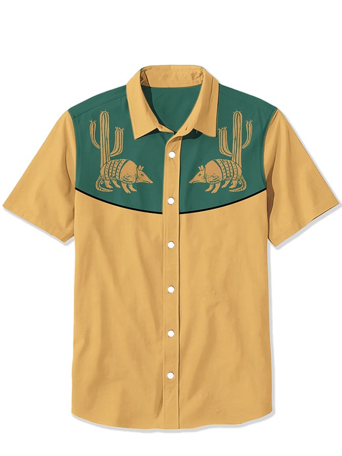 Men's Armadillo Cowboy Print Casual Shirt