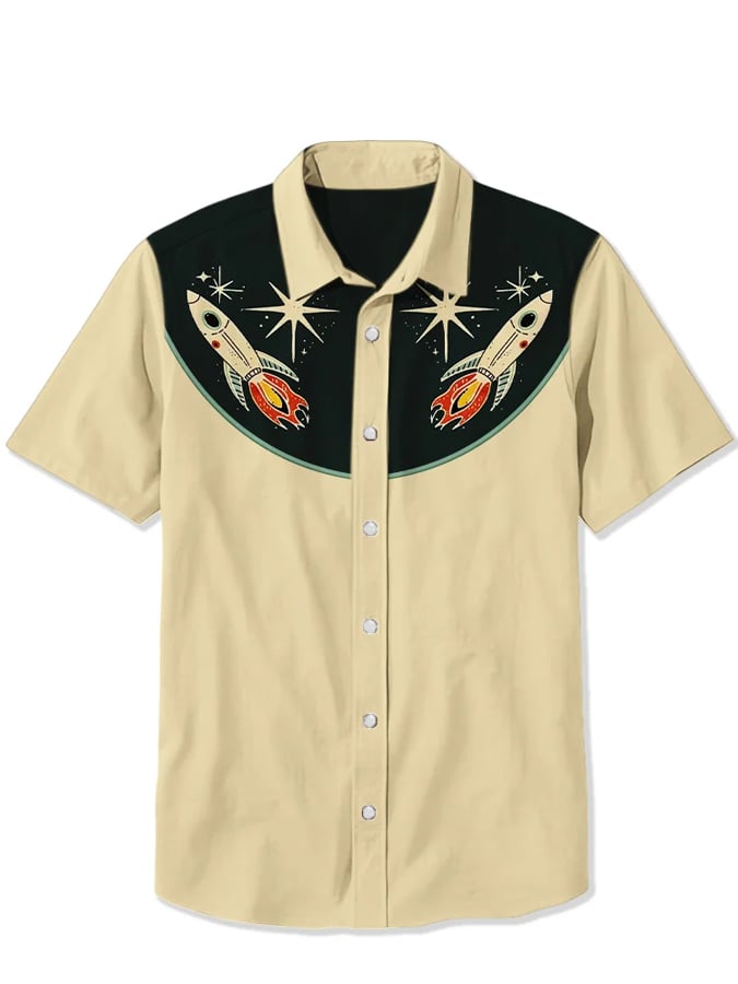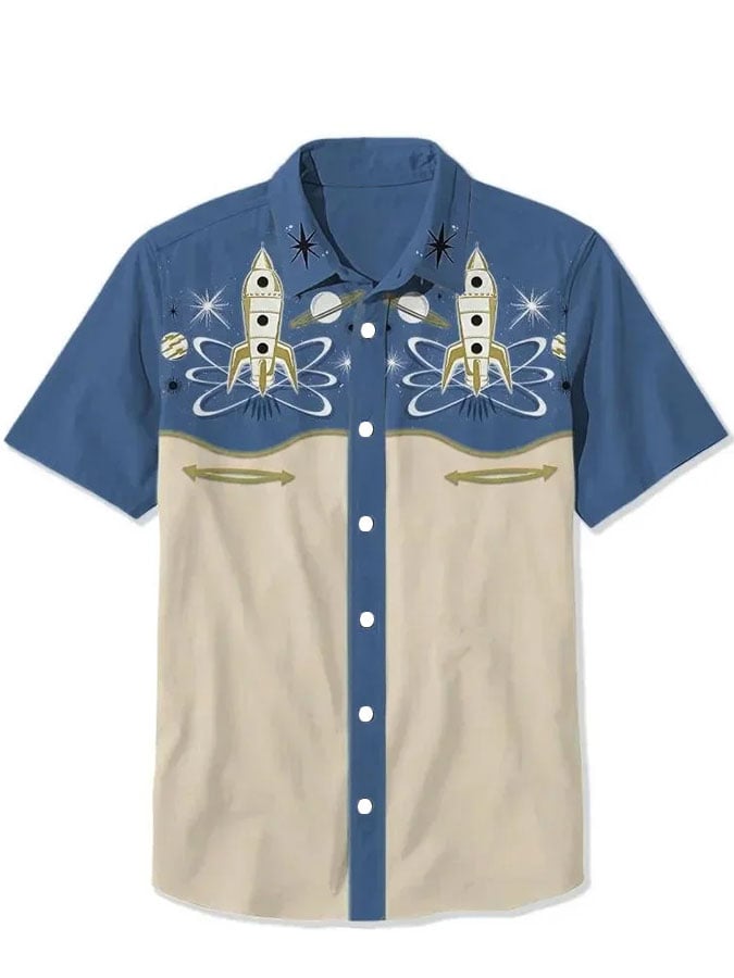 Men's 1950s Interstellar Spaceship Print Casual Shirt
