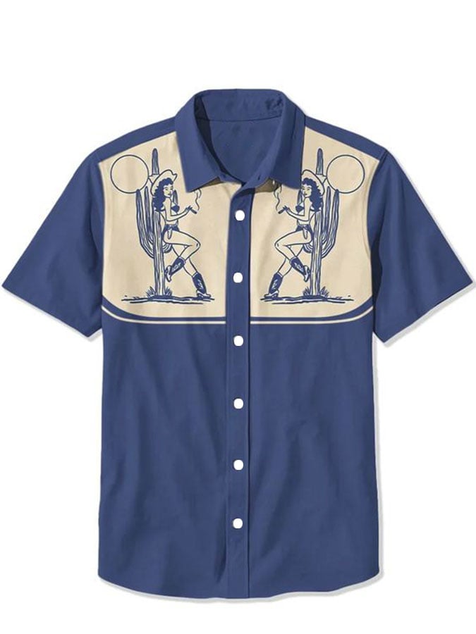 Men's Cactus Cowgirl Print Casual Shirt