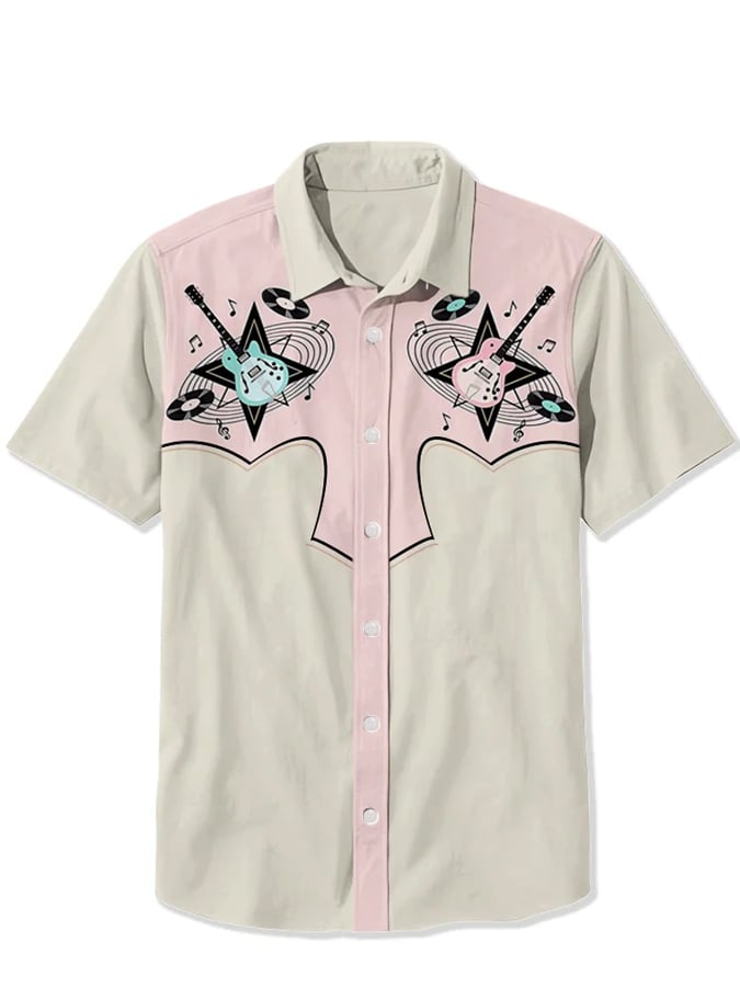 Men's Vinatge 1950s Atomic Guitar Print Casual Shirt