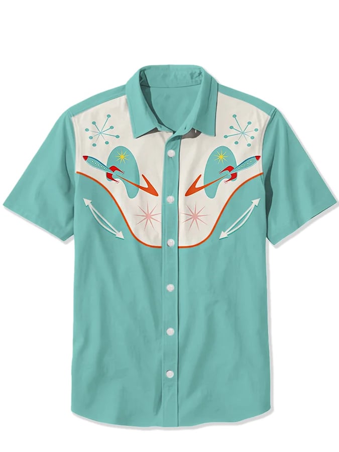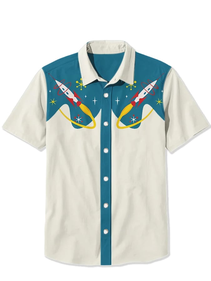 Men's Western 1950's Atomic Rocket Print Casual Shirt