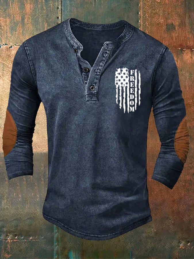 Men's Vintage National Freedom Flag Print Long Sleeve Top
