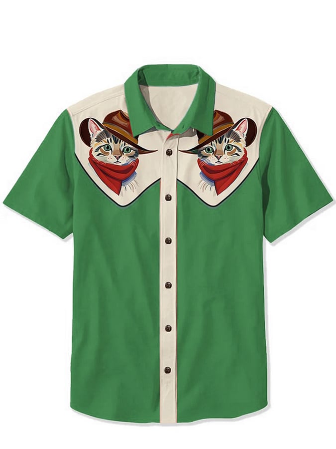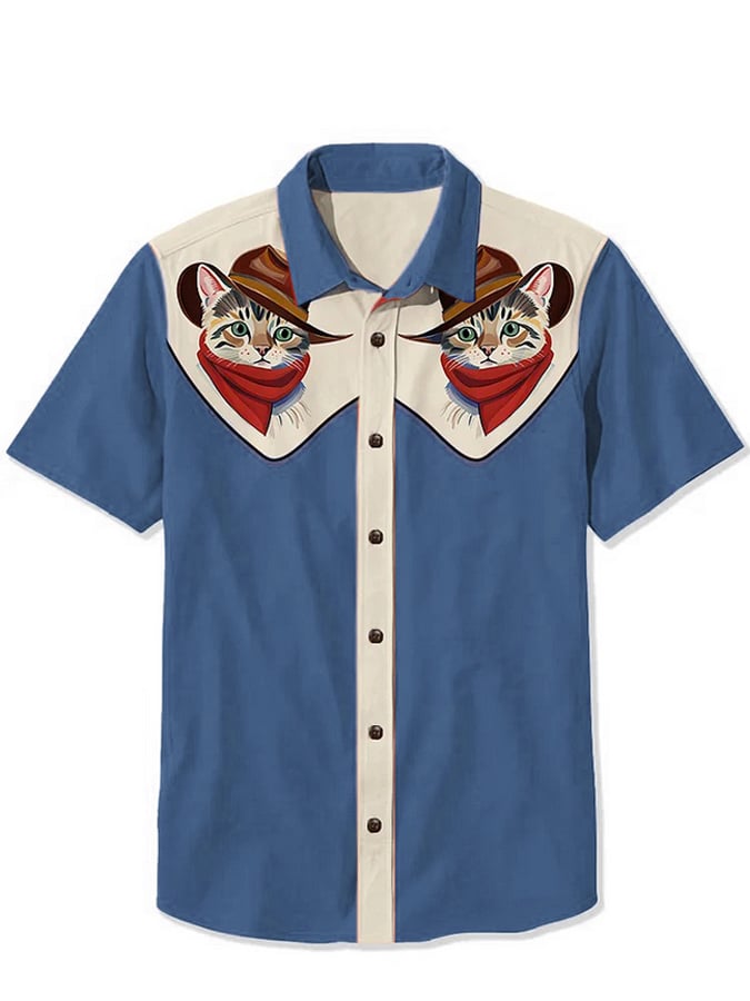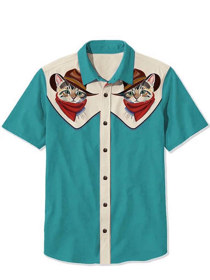 Men's Western Cowcat Print Casual Shirt
