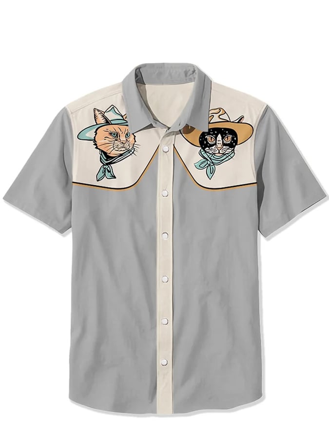 Men's Western Cowcat Print Casual Shirt
